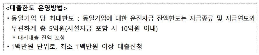 ◦ (대출한도) 동일기업* 당 7천만원** 이내