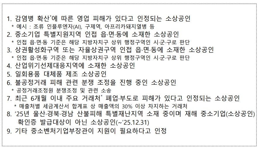 ※ 소상공인 기준은 ‘[붙임1] 소상공인 확인 기준’ 참조